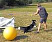 to cancel the races and devote also the second day to training. The two-day training provided enough space for practicing various treibball elements. The group of advanced dogs had